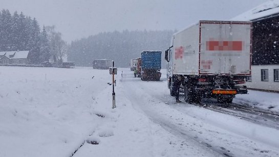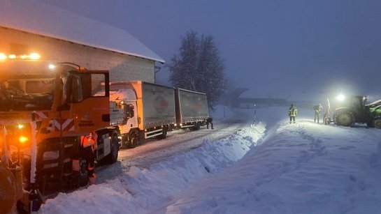 Aufgrund der schlechten Fahrverhältnisse, sowie teilweise mangelhafte Ausrüstung der LKW's, mussten wir mehreren Fahrzeugen weiterhelfen. Unterstützt dabei haben uns einige Kameraden mit ihren Traktoren sowie die Gemeinde mit dem Schneepflug. Leider mussten wir nach über 5 Stunden im Einsatz unsere Kameraden aus Vöcklabruck nachalarmieren, da ein LKW allein mit unserer Hilfe nicht wieder weiter fahren konnte.